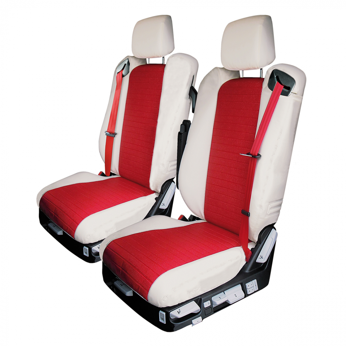 Set of made to measure seat covers in synthetic leather, with transpirant central part with holes.